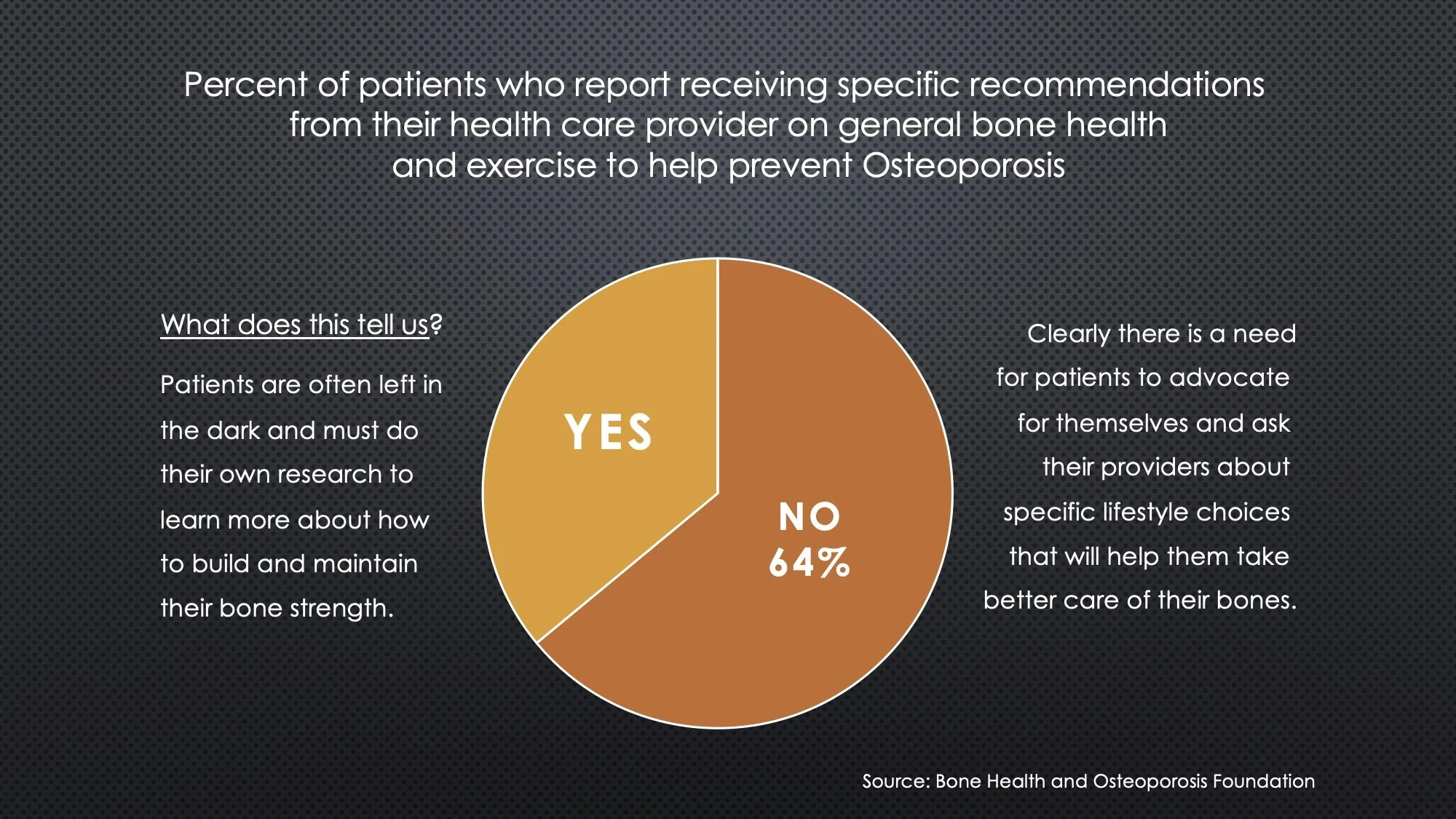 Clearly, there is a need for more education about this disease and bone health, in general.